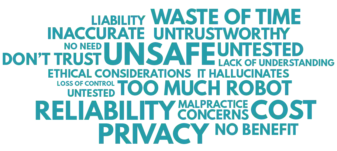 word cloud of common words lawyers used to describe their feelings about AI